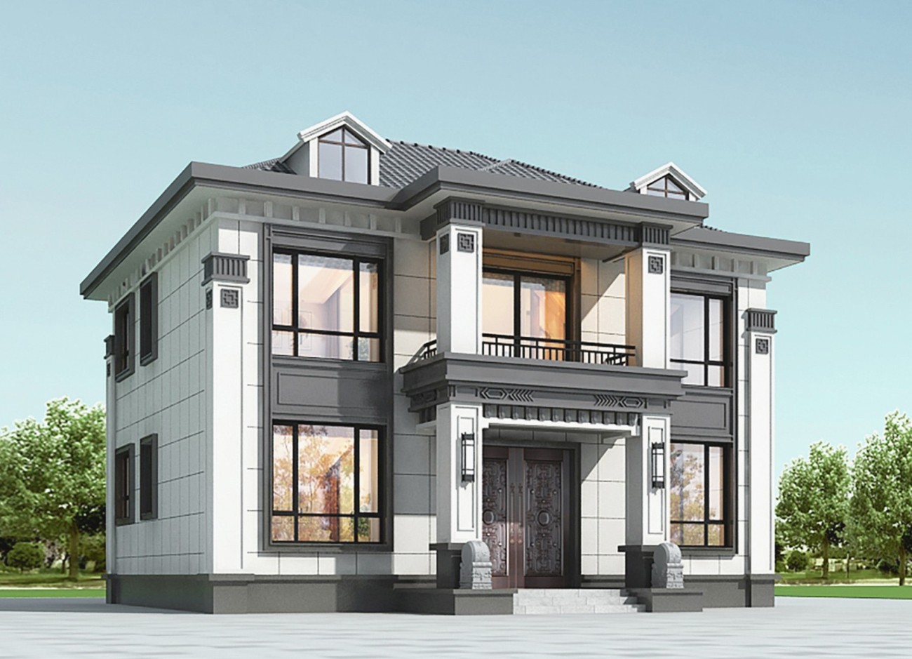 玉林005 两层新中式(11.36x11.76米)-【易设计】