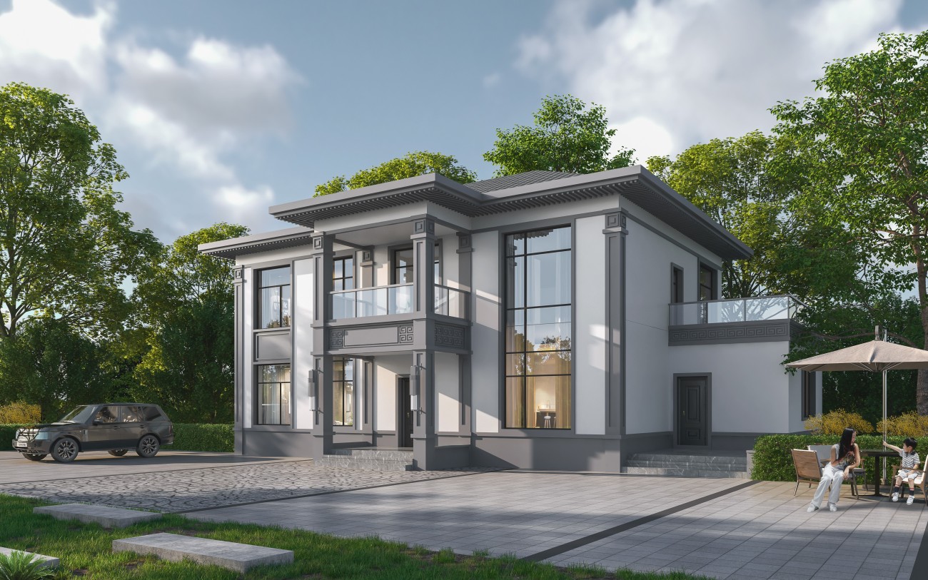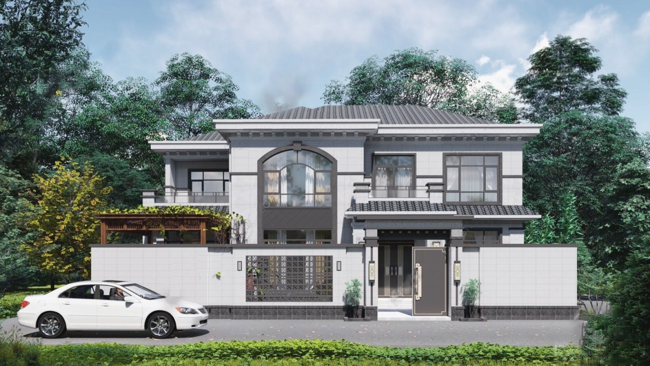 玉林011 两层新中式(15.43x12.66米)-【易设计】